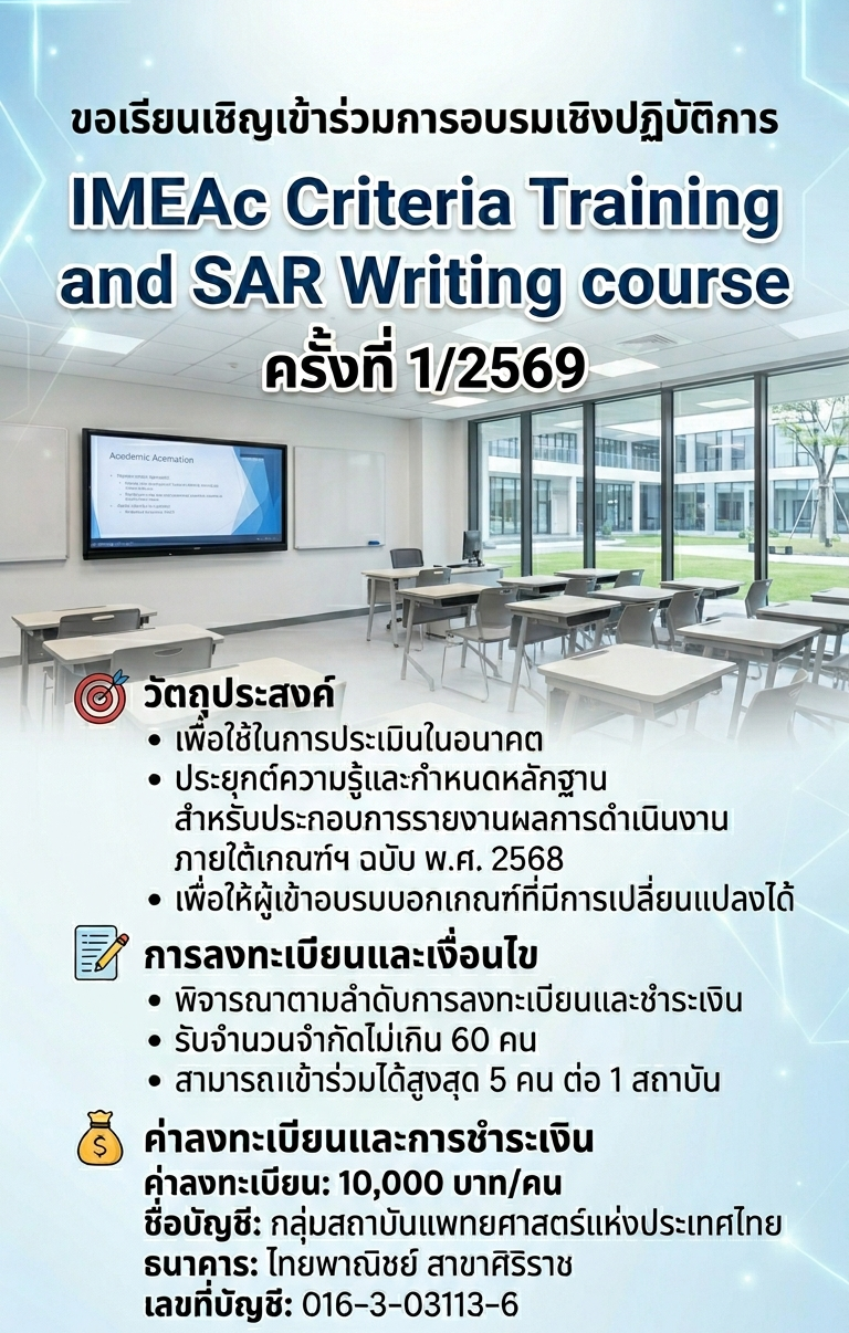 IMEAc Criteria Training and SAR Writing course ครั้งที่ 1/2569 New !